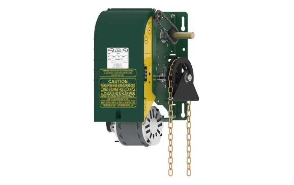 The Opera-MH is a medium-duty operator designed for use on standard, high and vertical lift sectional doors or small rolling doors and grilles. It incorporates the patented Hoist-a-Matic®, a self-engaging chain hoist for manual operation, which simplifies operation and installation.