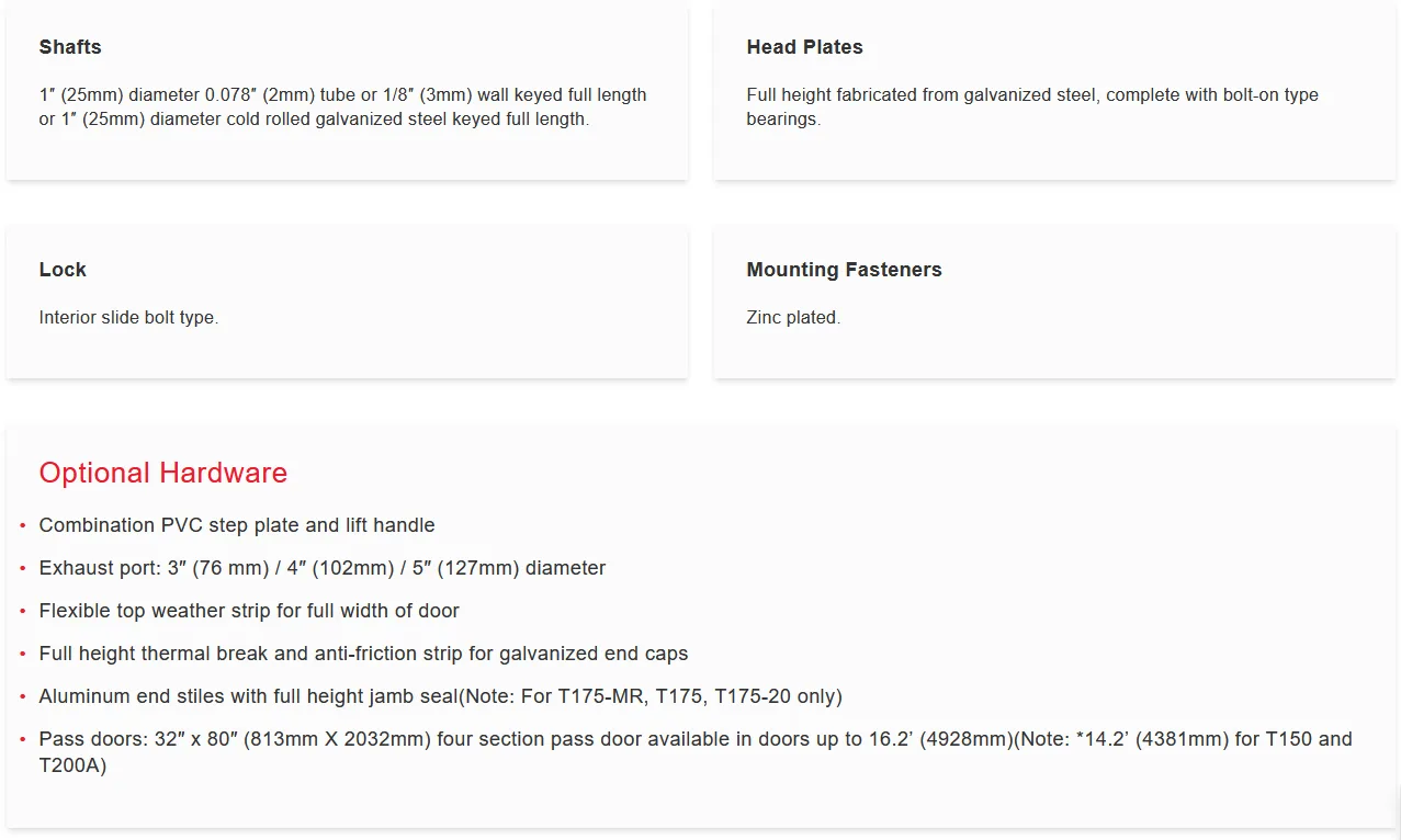 Installed with our highest quality hardware components, Thermatite Doors are engineered to provide many years of worry-free operation and are suitable for a wide range of applications.